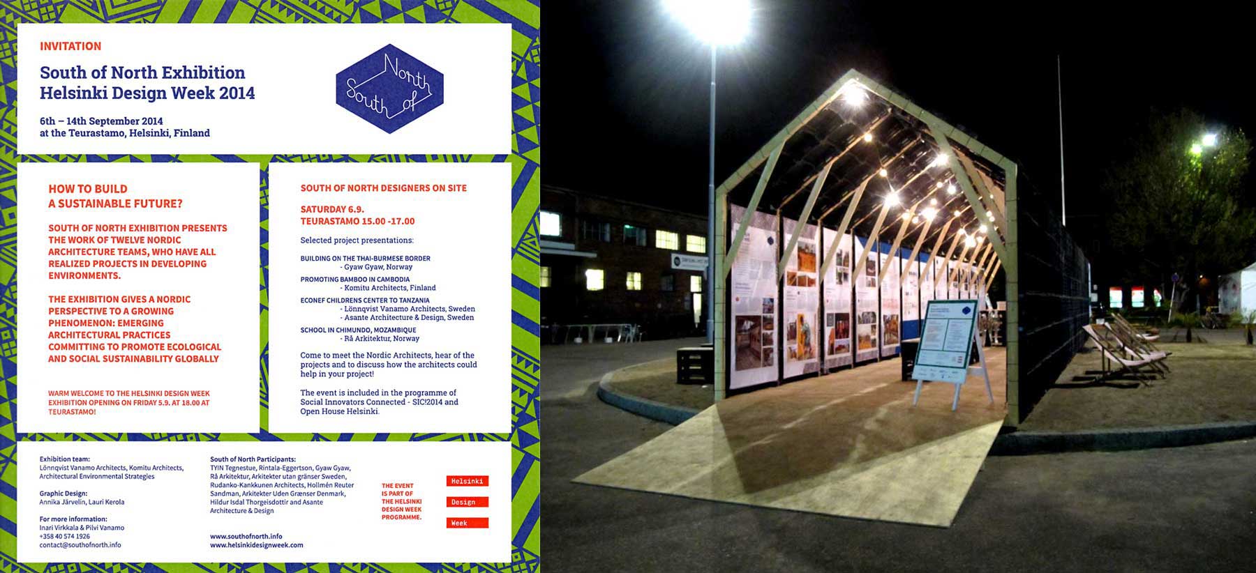 The South of North Exhibition opened on friday in Teurastamo, at the Helsinki Design Week. The work presents 12 nordic architectural practices, our project experiences and perspectives on development. The South of North network have met in all nordic countries throughout 2013-2014, and this has been the result of our meetings.