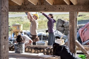 The cordwood walls and the design is starting to take shape