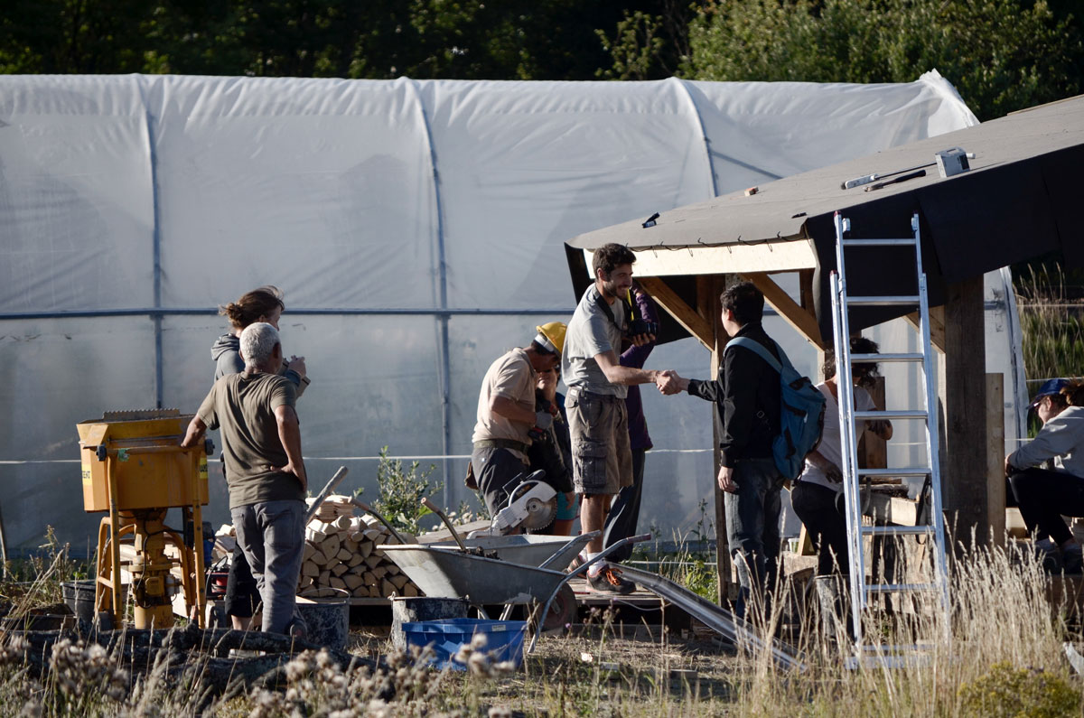 The cordwood walls and the design is starting to take shape