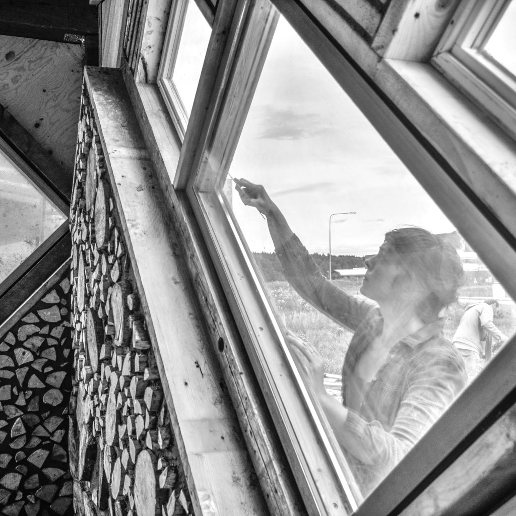 En 4 veckors workshop där vi byggde en butik till Eko-Odlarna i Östertälje. Syftet var att utforska byggtekniken kubbhus, samtidigt som vi vill förbättra verksamheten med en butik som också signalerar platsens budskap om ekologisk odling och resurstänk. Materialet till bygget var återvunnet trä, återbruk av fönster samt utvunnet material från platsen. Ett riktigt klimatsmart bygge.